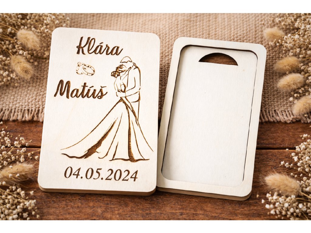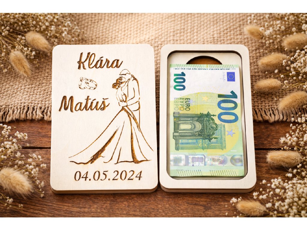 Manželia peniaze použijú na niečo krásne pre seba a drevená obálka im zostane ako krásna pamiatka na ich veľký deň.