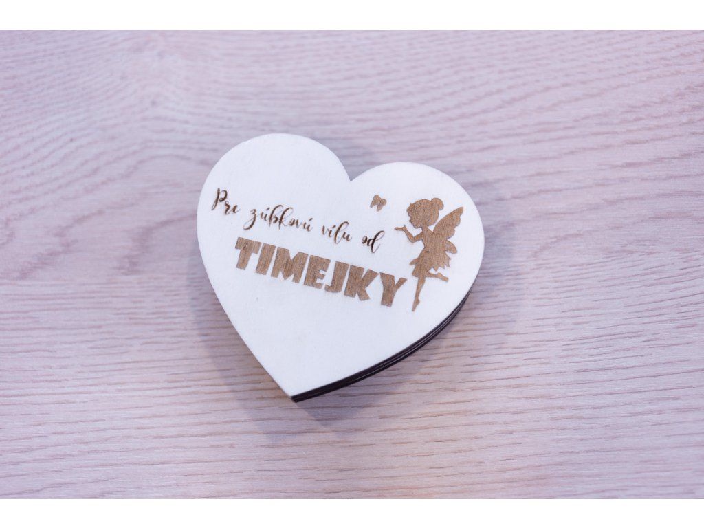 Drevená krabička na mliečne zúbky v tvare srdiečka je krásnym miestom na uchovanie prvých detských zúbkov. Personalizované meno dieťaťa a jemný dizajn vytvárajú milú pamiatku na detstvo a kúzelný moment, keď si zúbková víla príde po vypadnutý zúbok.