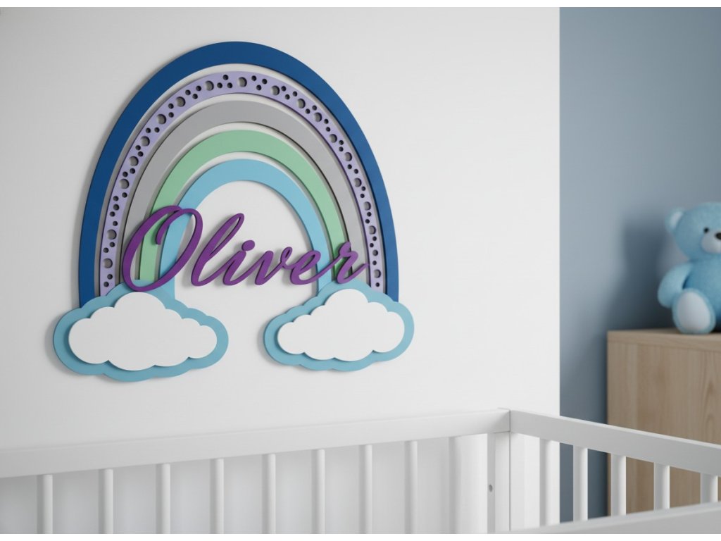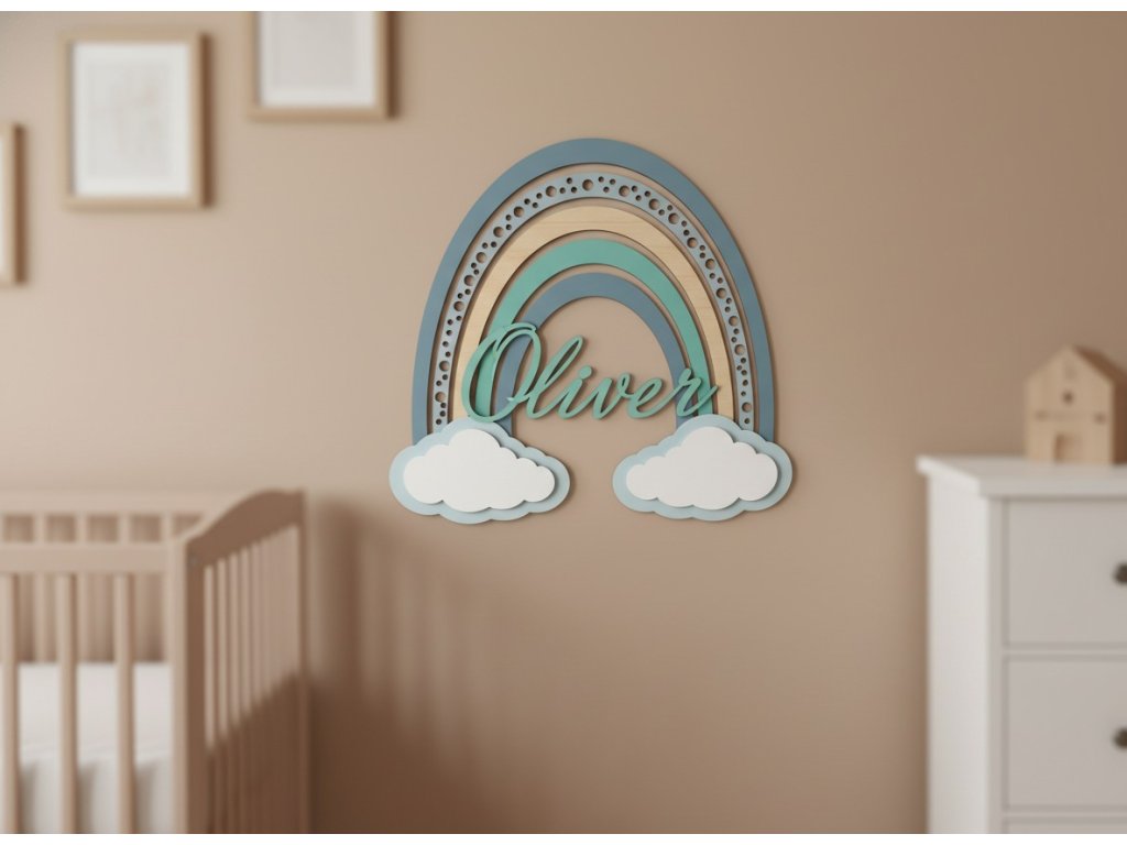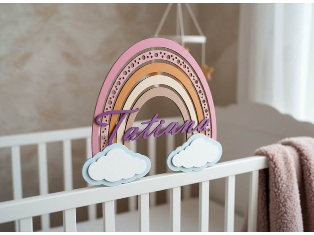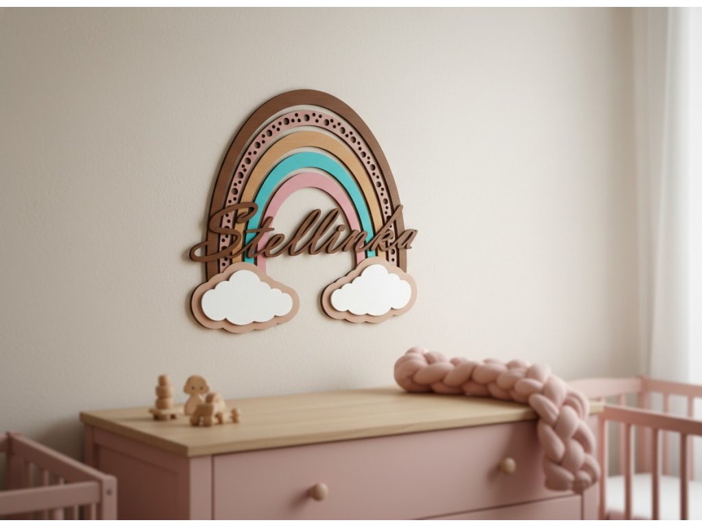 Rozžiarte detskú izbičku nežnou a veselou menovkou v tvare dúhy, ktorá prinesie do priestoru farby, harmóniu a osobný nádych. 🌤️