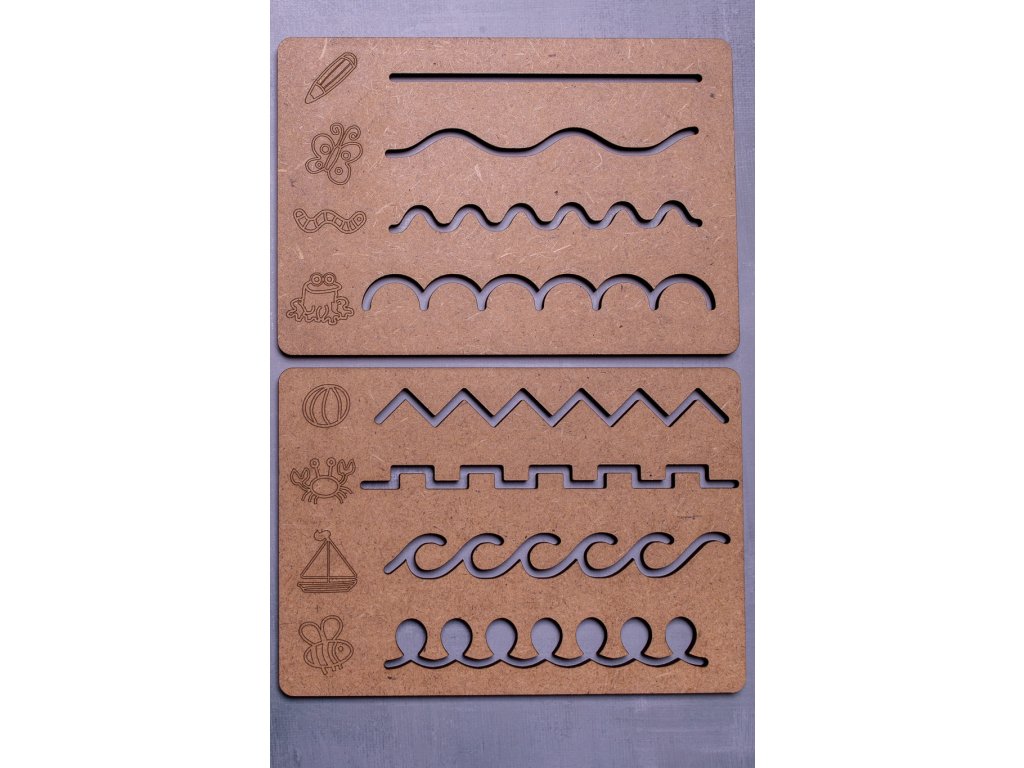 Hravé učenie kreslenia ešte nikdy nebolo jednoduchšie! Mini šablóny VLNKY sú skvelým pomocníkom pre deti, ktoré sa učia viesť ceruzku plynulo a precízne. Pomáhajú rozvíjať grafomotoriku, koordináciu ruka-oko a pripravujú malých umelcov na neskoršie písanie.