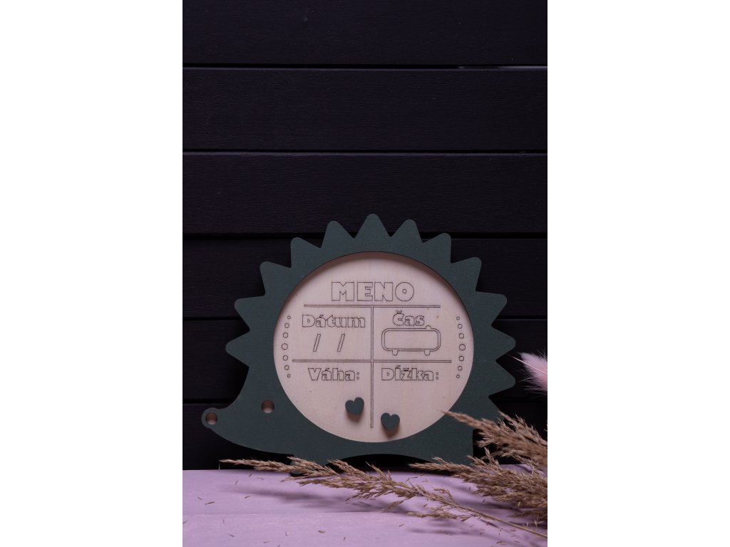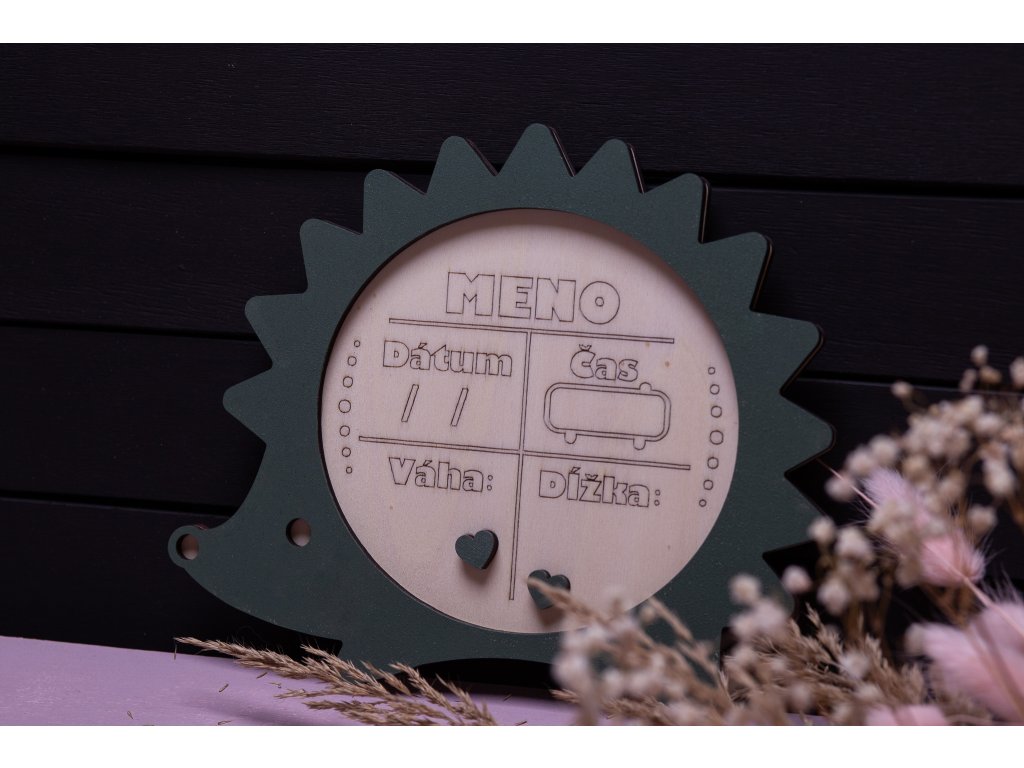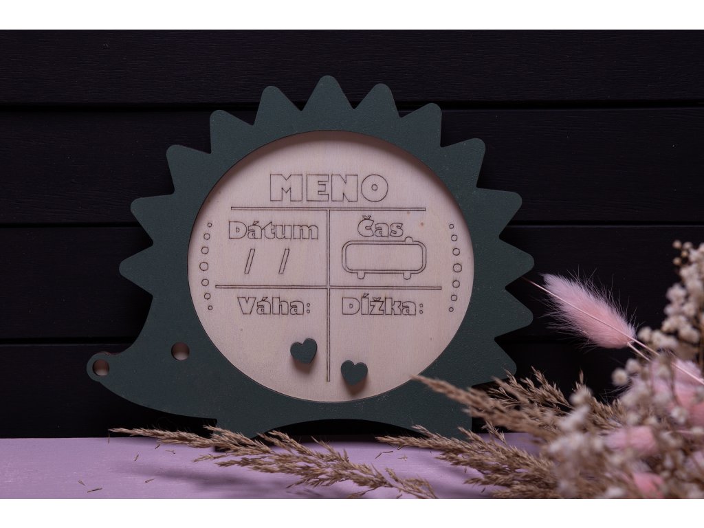 S pamätnou tabuľkou o narodení bábätka, ktorú vám presne na mieru rada vyrobím, budete mať tieto detaily už navždy pekne pospolu. Moja tabuľka vám uchová všetky tie krásne a podstatné maličkosti ako dátum narodenia vášho pokladu, jeho meno, váha a dĺžka . Tabuľku vyrábam zo 4mm topoľovej preglejky vo dvoch vrstvách, vo tvare rozkošného ježka. Vybrať si môžete akúkoľvek farbu tabuľky, tak aby sa vám páčila a hodila. Všetky potrebné informácie vrátane farby, prosím uveďte pri objednávke do poznámky.