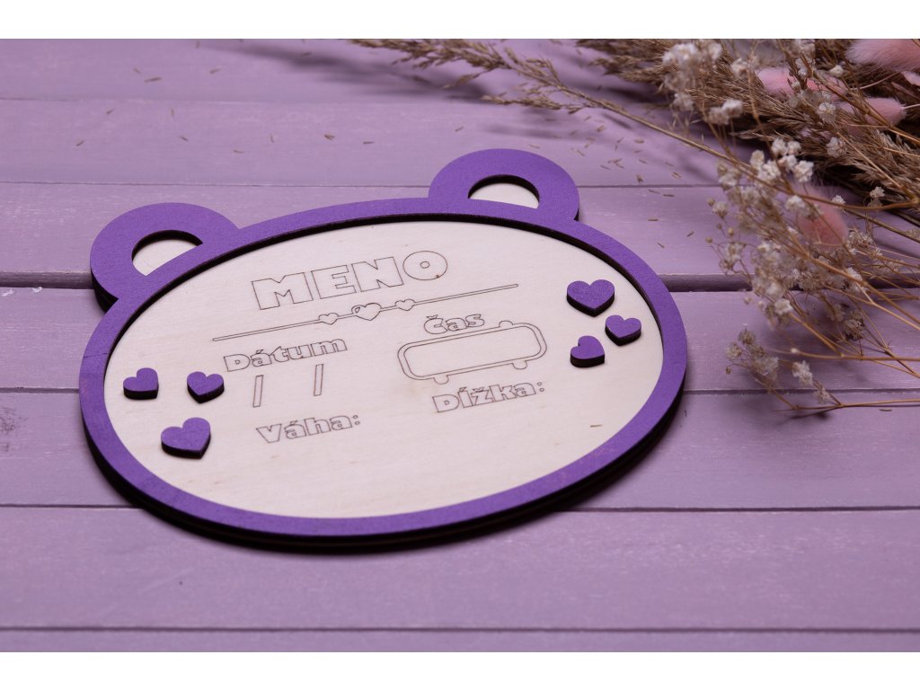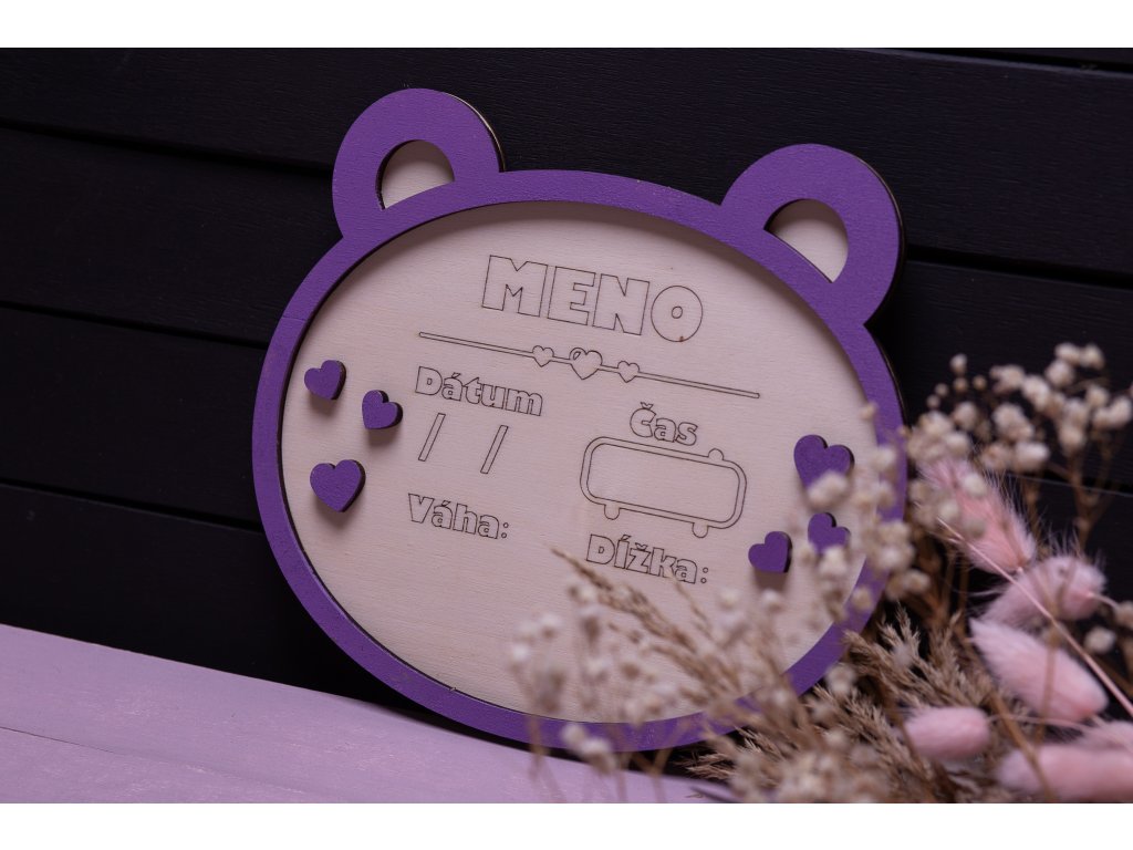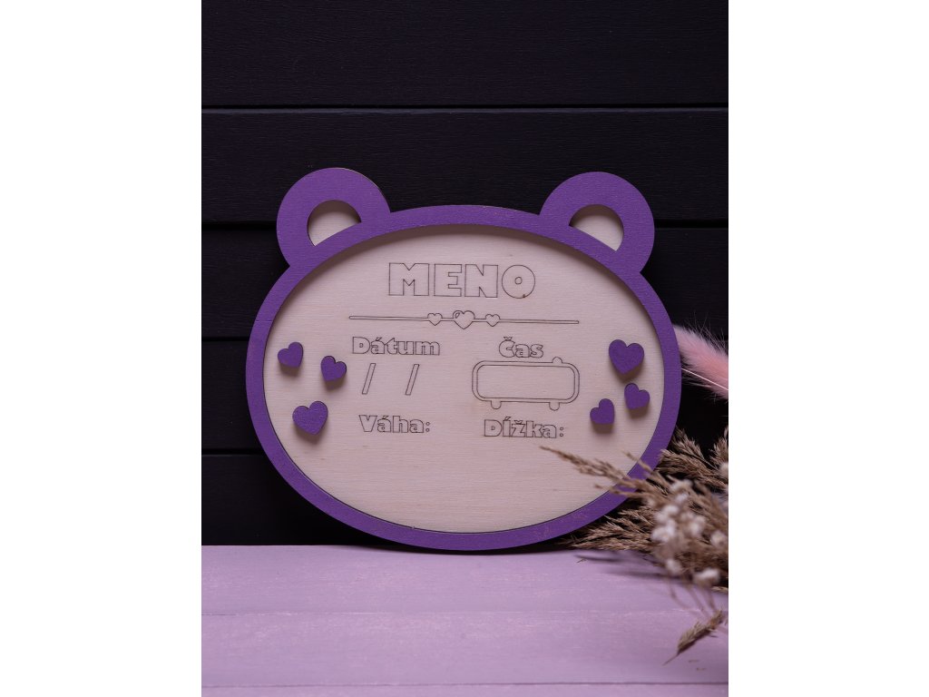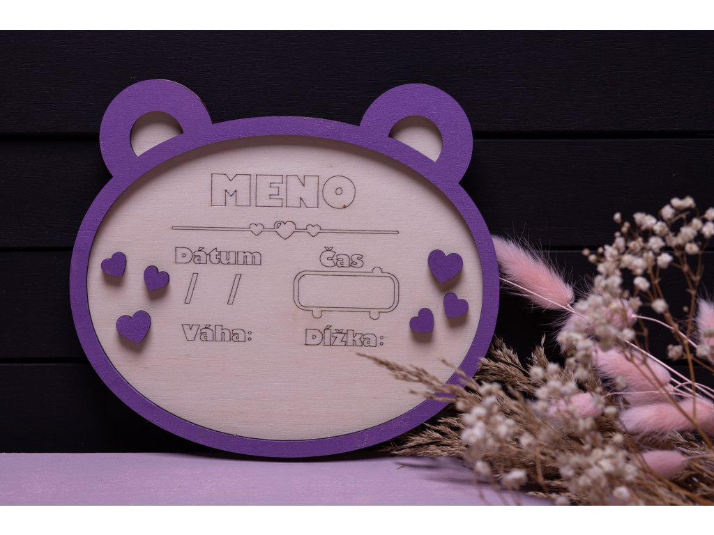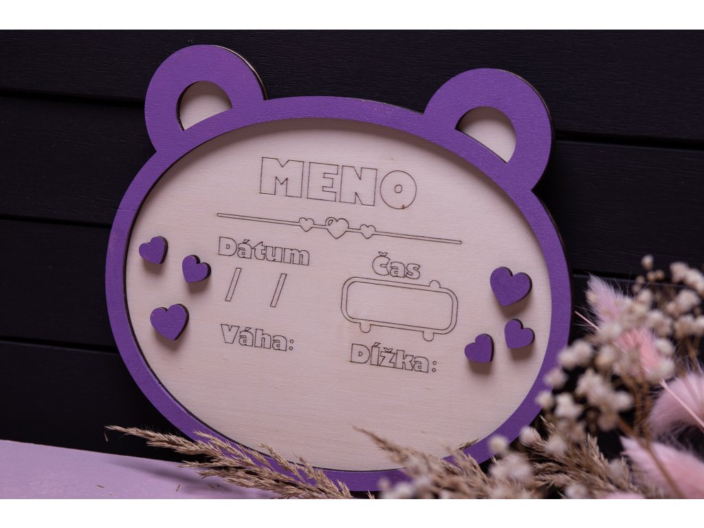 S pamätnou tabuľkou o narodení bábätka, ktorú vám presne na mieru rada vyrobím, budete mať tieto detaily už navždy pekne pospolu. Moja tabuľka vám uchová všetky tie krásne a podstatné maličkosti ako dátum narodenia vášho pokladu, jeho meno, váha a dĺžka . Tabuľku vyrábam zo 4mm topoľovej preglejky vo dvoch vrstvách, vo tvare medvedej hlavy. Vybrať si môžete akúkoľvek farbu tabuľky, tak aby sa vám páčila a hodila. Všetky potrebné informácie vrátane farby, prosím uveďte pri objednávke do poznámky.