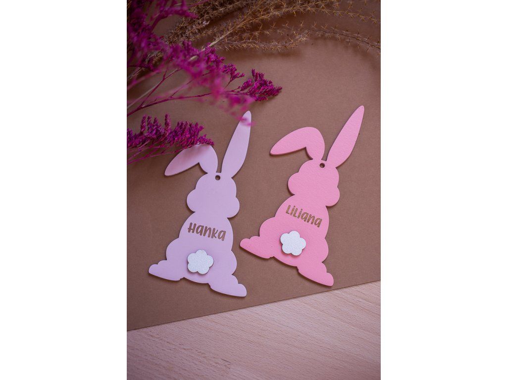 Na zajka je možné vygravírovať meno, vďaka čomu vznikne originálna veľkonočná menovka alebo drobný darček pre šibačov.