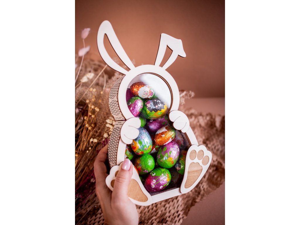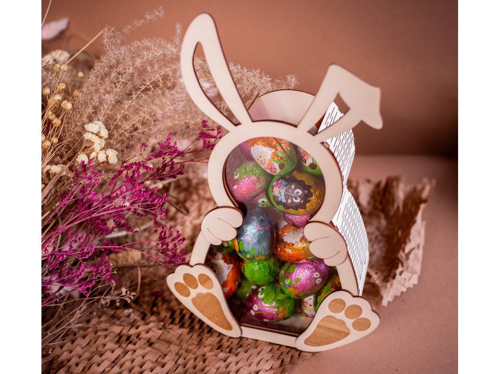 Veľká noc je časom tradícií, radosti a milých darčekov pre šibačov. Drevená krabička v tvare veľkonočného zajka je krásnou alternatívou ku klasickým košíkom alebo papierovým baleniam.