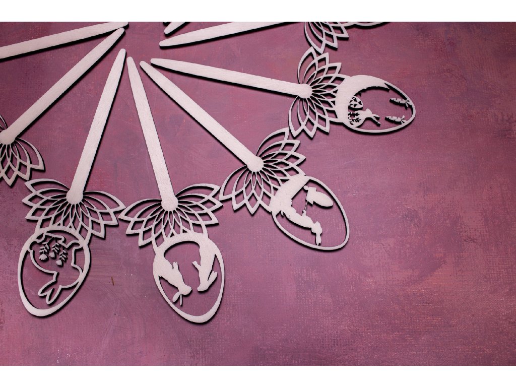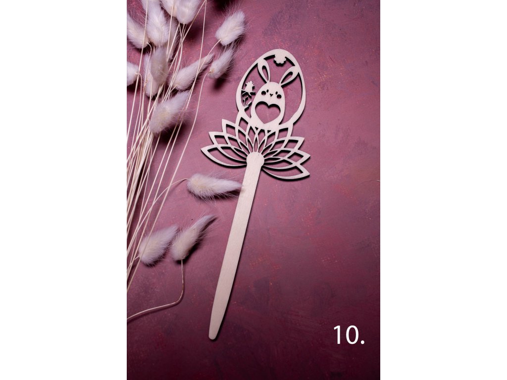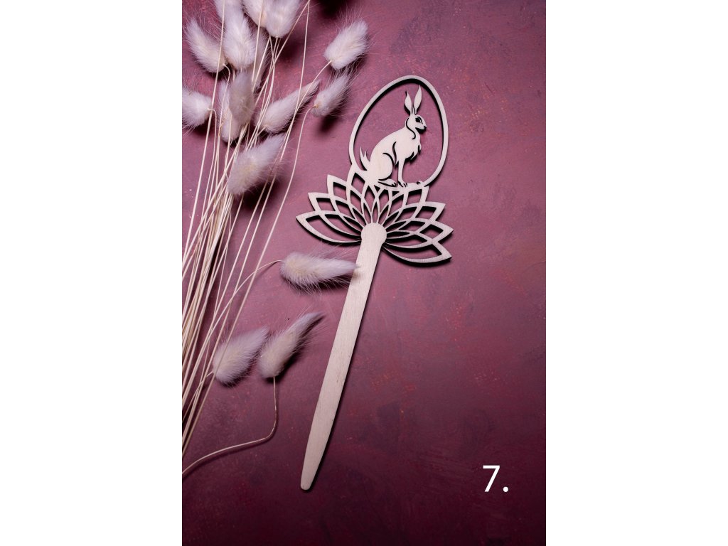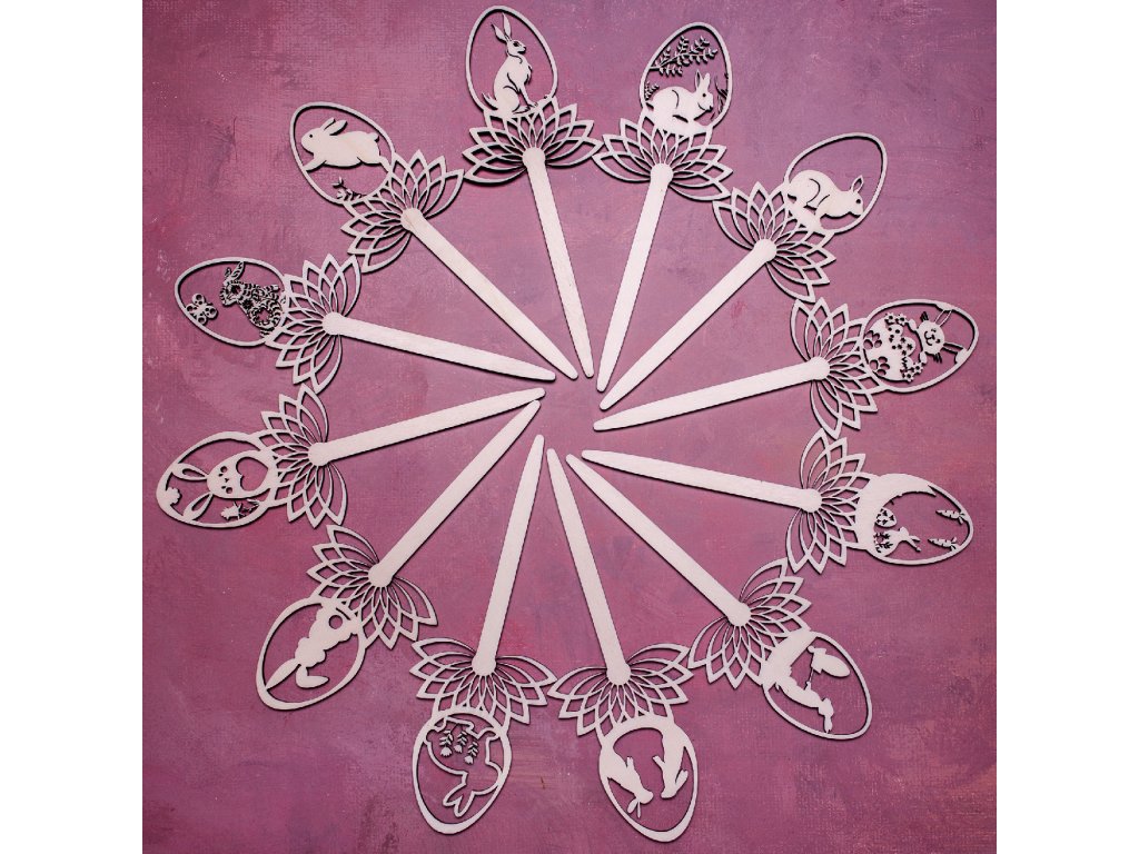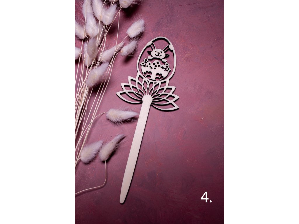 Zápichy do kytičky alebo napríklad do črepníka s krásnym jarným aranžmánom dotvoria veľmi jemným a vkusným spôsobom veľkonočnú atmosféru. Vyrobené sú z jednej vrstvy topoľovej preglejky a celková dĺžka zápichu je 21 cm.